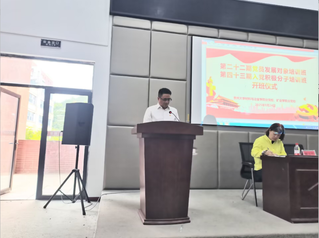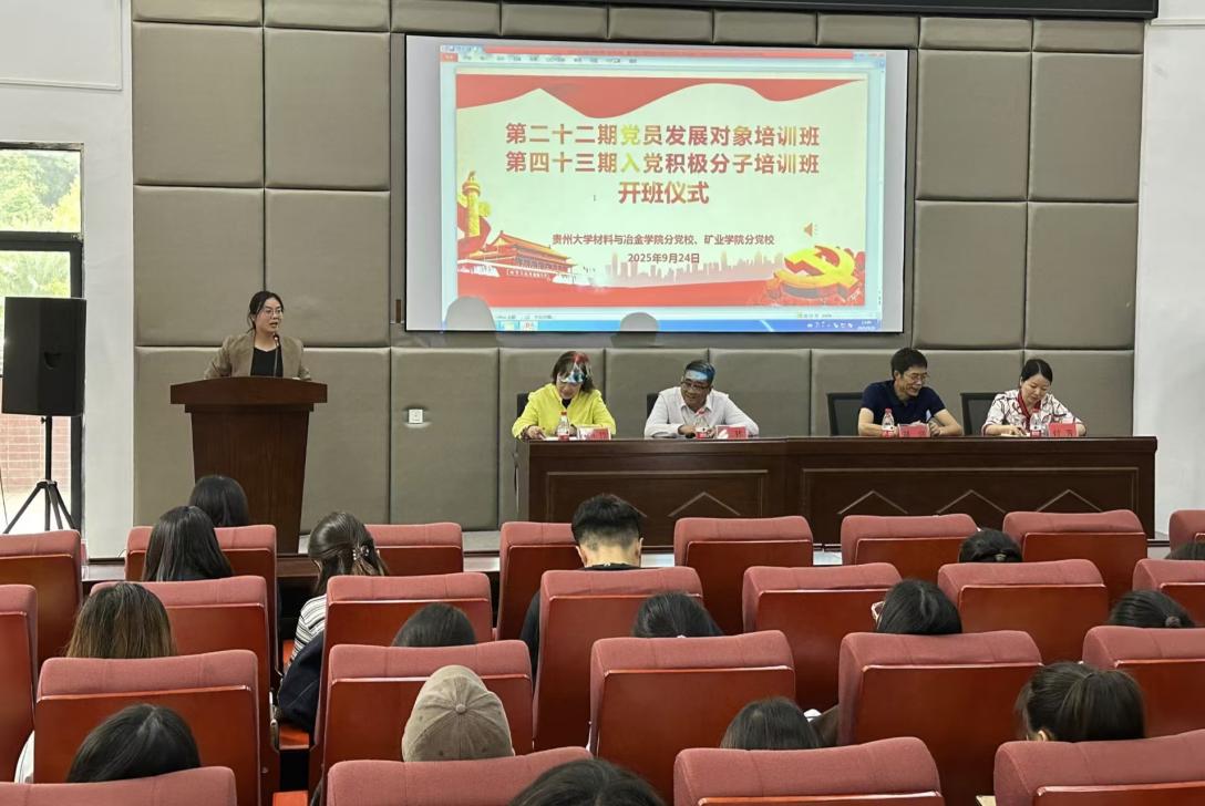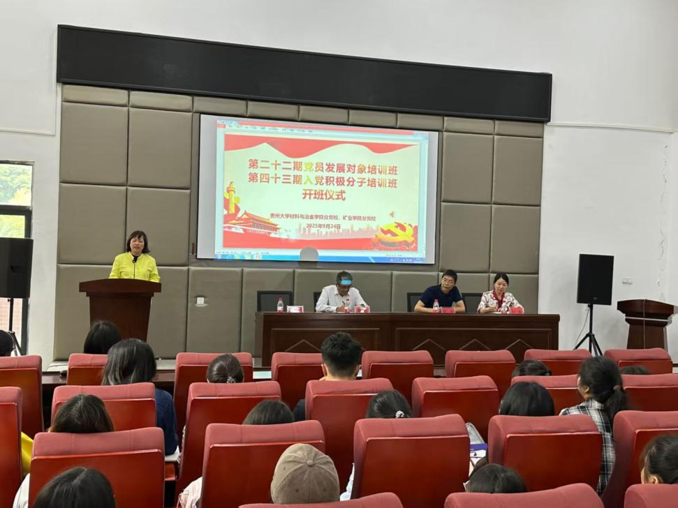 2025年9月24日中午12:50,材料与冶金学院党委、矿业学院党委联合举办第二十二期党员发展对象培训班暨第四十三期入党积极分子培训班开班仪式。材料与冶金学院党委书记刘剑、正处级组织员熊玉竹,矿业学院党委书记张林、正处级组织员付芳、培训班班主任李选蝶、谢亚秋及70余名党员发展对象和入党积极分子参加,本次会议由正处级组织员熊玉竹主持。