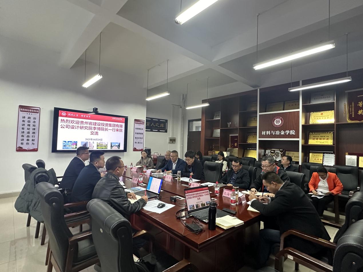 2025年10月29日上午,贵州省建设投资集团有限公司设计研究院李博院长一行来我院进行座谈交流,座谈会于学院425会议室召开,会议由学院副院长陈朝轶主持,学院党委书记刘剑、副院长赵飞、省重点实验室主任李长荣、冶金系教研室主任兰苑培,贵州省建设投资集团有限公司设计研究院院长李博、工业分院院长王学武、科创中心办公室主任陈勇出席会议,以及部分教师代表参加座谈。